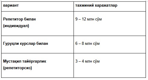 Имтиҳон формати ва санасини танланганидан сўнг асосий — тайёргарлик ва имтиҳон учун қанча пул кетиши ҳақидаги савол пайдо бўлади.