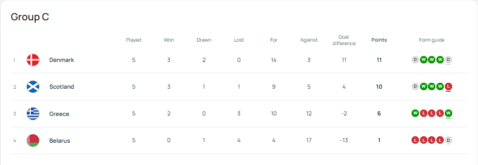 18 ноябр. Беларус – Греция, Шотландия – Дания.