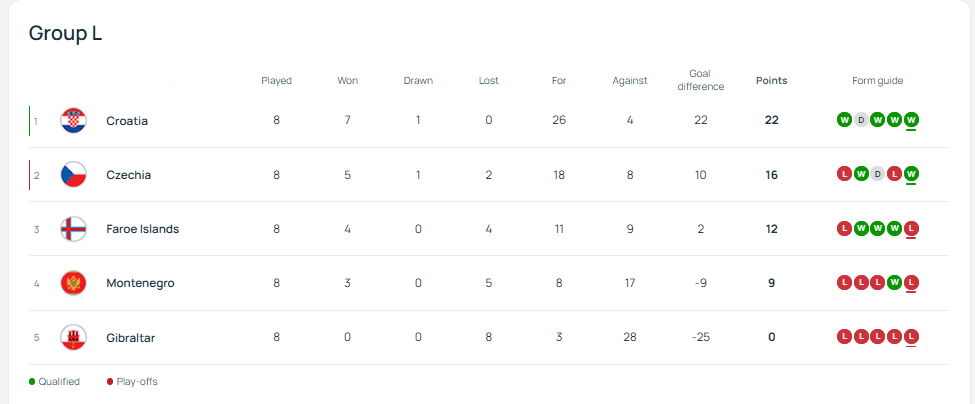 Аммо Хорватия ютқазишга ўрганмаган. Бўлим давомида «шашкачилар» Иван Перишичнинг пеналтидан урган голи орқали ҳисобни қисқартирди, танаффусда Златко Далич ҳимоя чизиғини янгилади ва иккинчи бўлимда бошқа гол ўтказилмади. Меҳмонлар тўлиқ куч билан ҳужумга ўтишди ва аввалига Якичнинг аниқ зарбаси билан ҳисобни тенглаштиришди. Модрич захирадан ўйинга қўшилганидан кейин эса Хорватия ғалабани илиб кетди. Никола Влашич қарши ҳужумни чиройли гол билан якунлади. Саккиз турда 22 очко – Хорватия ЖЧ-2026 саралашини мағлубиятсиз якунлади.