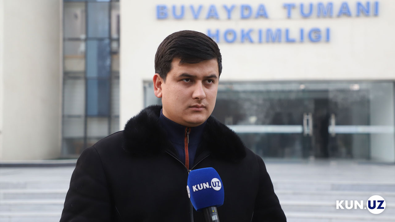 Эслатиб ўтамиз, Бувайда туманида экология инспектори Аҳроржон Ниёзов аҳоли мурожаатига асосан манзилга бориб, ноқонуний дарахт кесиш ҳолатини аниқлаган. Сўнгра дарахтларни кесаётган шахсни тўхтатиб, белгиланган тартибда ҳужжатларни расмийлаштирмоқчи бўлган. Воқеа жойида бўлган Бувайда тумани ҳокими ўринбосари Сайиджон Хизиров эса экология инспекторига куч ишлатиб, уни четроққа олиб чиқишга уринган