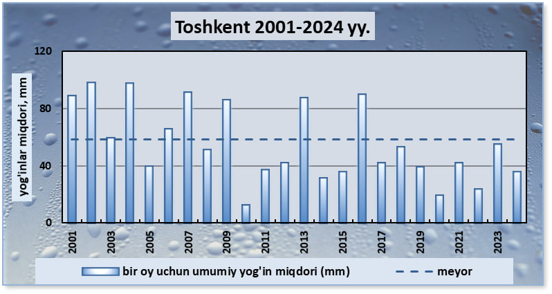 Сўнгги 8 йил ичида Ўзбекистонда декабр ойлари қуруқ (ёғингарчилик меъёрдан кам) бўлди.
