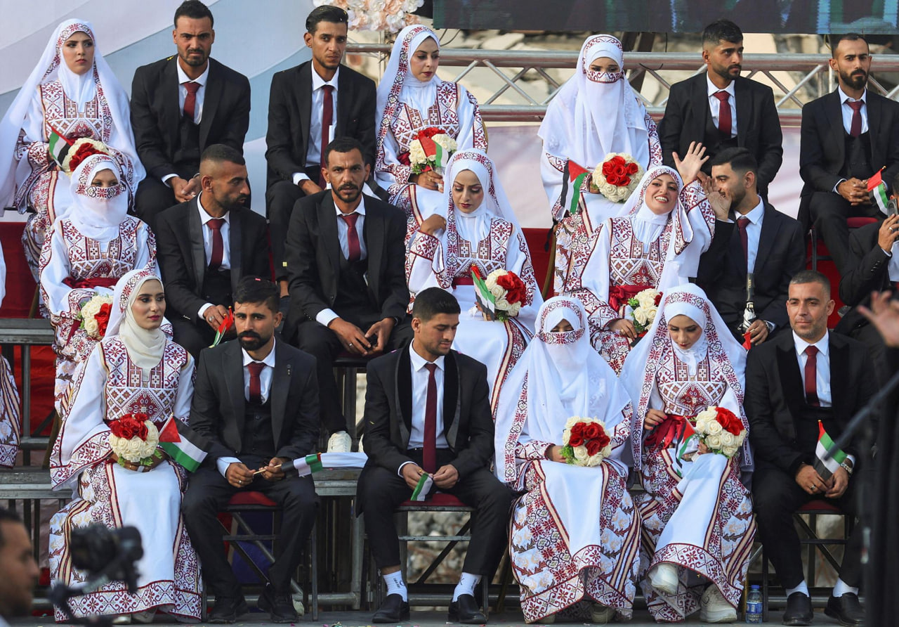 Фаластин байроқлари ва гуллар билан бурканган маросимга Ғазода анчадан буён хурсандчилик кўрмаган минглаб оилалар ташриф буюрди. Ташкилотчилар жуфтликлар ҳаётини бошлаши учун бироз миқдорда пул ва зарурий буюмларни ҳам тақдим этган.