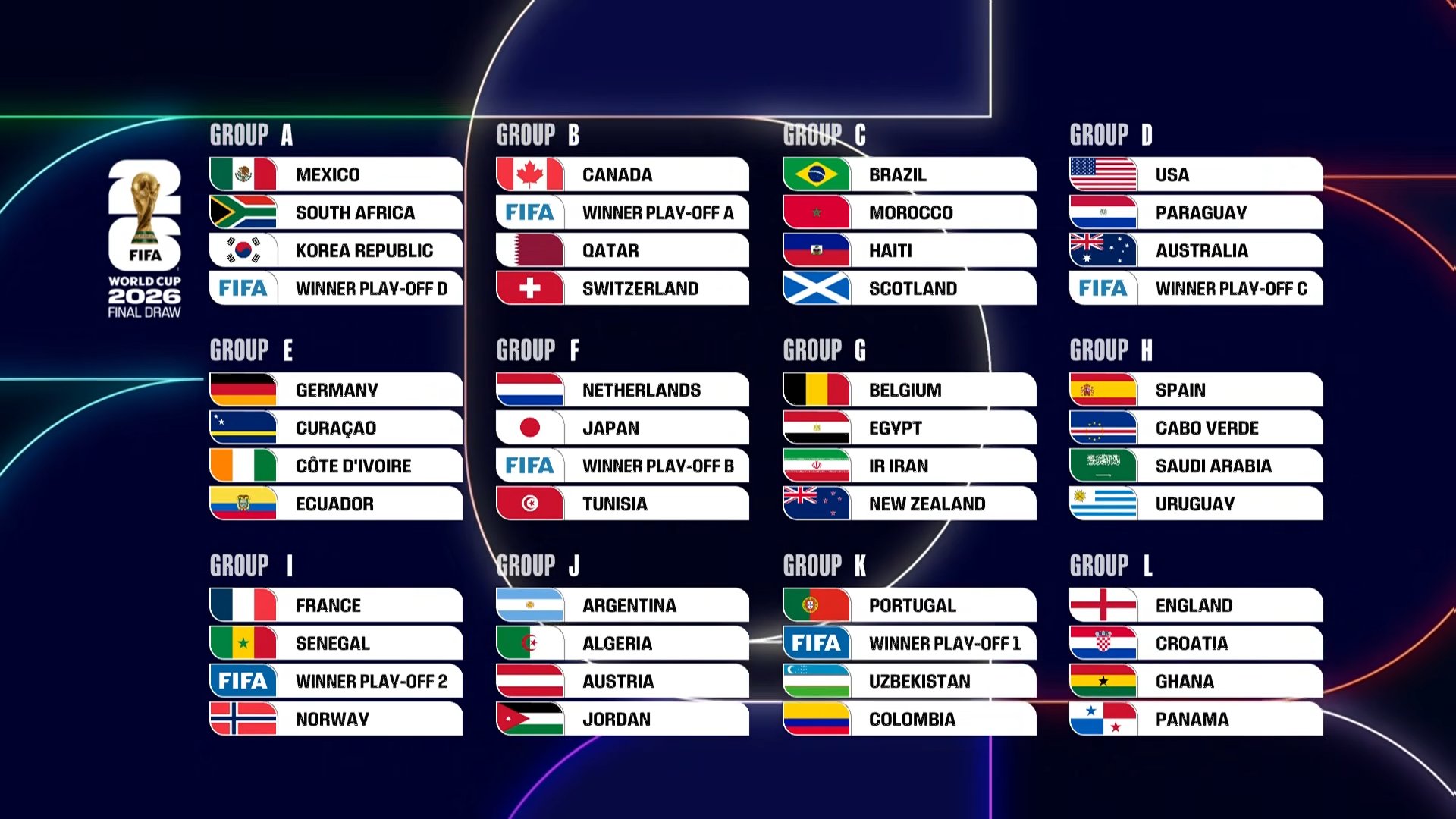 Ҳали турнир иштирокчилари рўйхати тўлиқ шаклланмаган, ЖЧ-2026 йўлланмасини фақат 42 жамоа ҳал қилган. Яна олти жамоа номи 2026 йил мартидаги ўтиш ўйинлари орқали маълум бўлади.