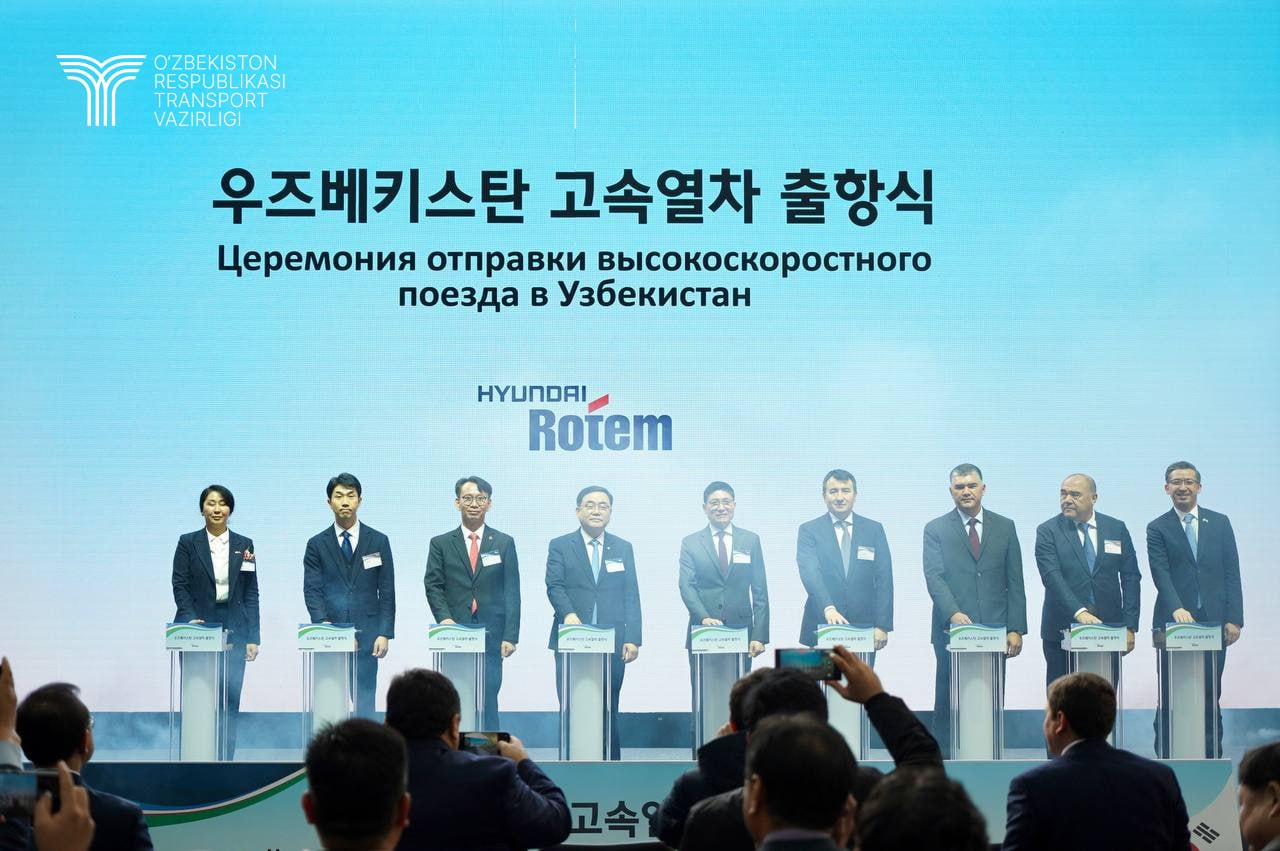 Жанубий Кореянинг Чангвон шаҳридаги Масан портида Ўзбекистон учун ишлаб чиқарилган Hyundai Rotem юқори тезликдаги поездлари биринчи партиясини расмий жўнатиш маросими бўлиб ўтди.