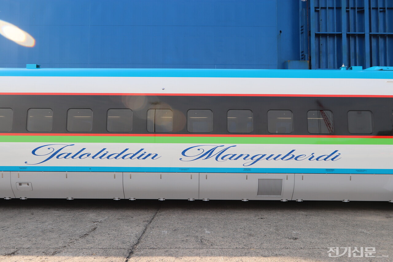 «Жалолиддин Мангуберди» номи берилган Ўзбекистоннинг янги юқори тезликдаги темир йўл паркининг биринчи поезди Hyundai Rotem томонидан Ўзбекистон темир йўллари билан 2024 йил июн ойида имзоланган шартнома доирасида ишлаб чиқарилди.