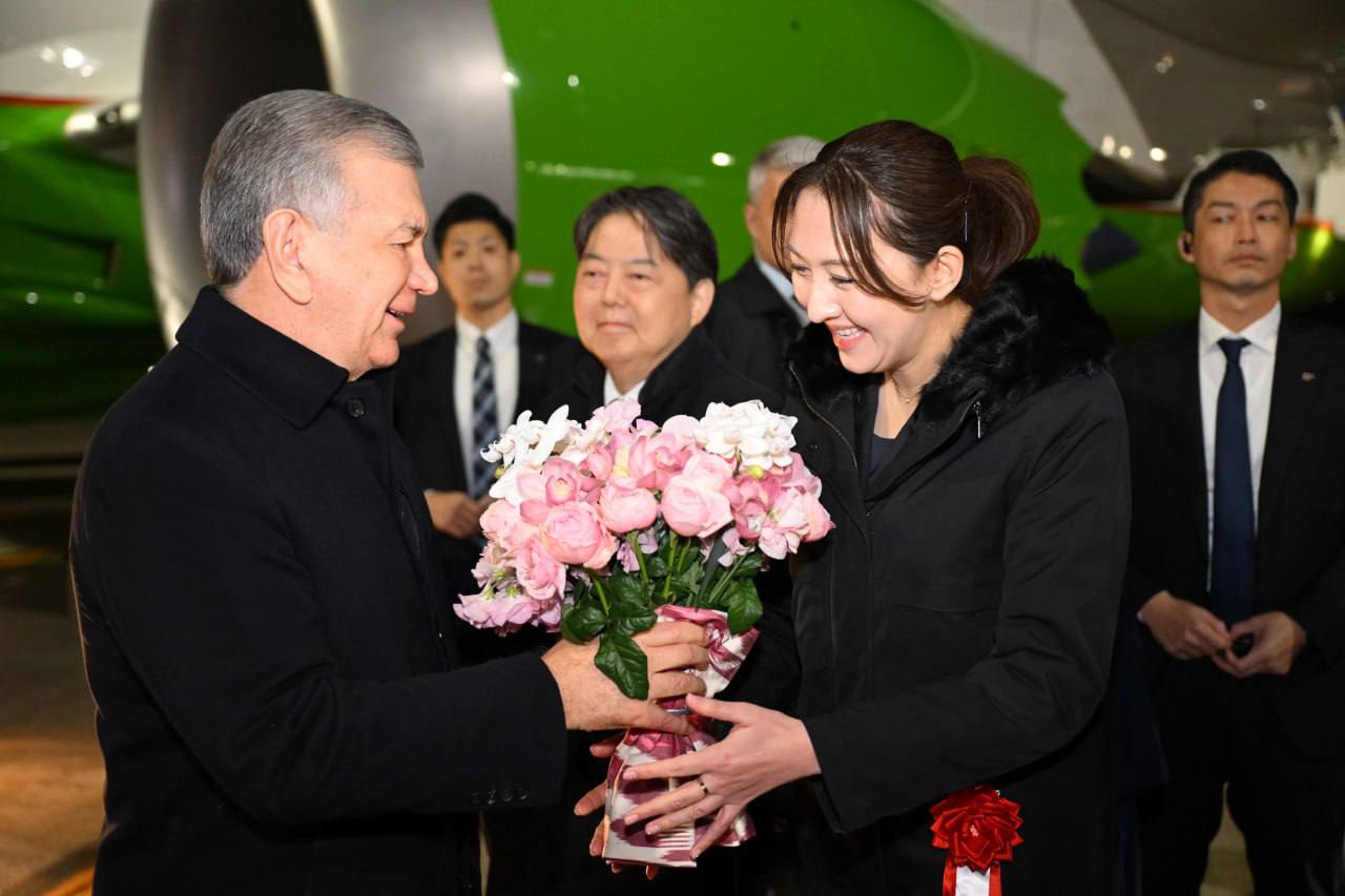 «Ханеда» халқаро аэропортида давлат раҳбарини Япония ички ишлар ва коммуникациялар вазири Ёшимаса Хаяши ва бошқа расмийлар кутиб олди.
