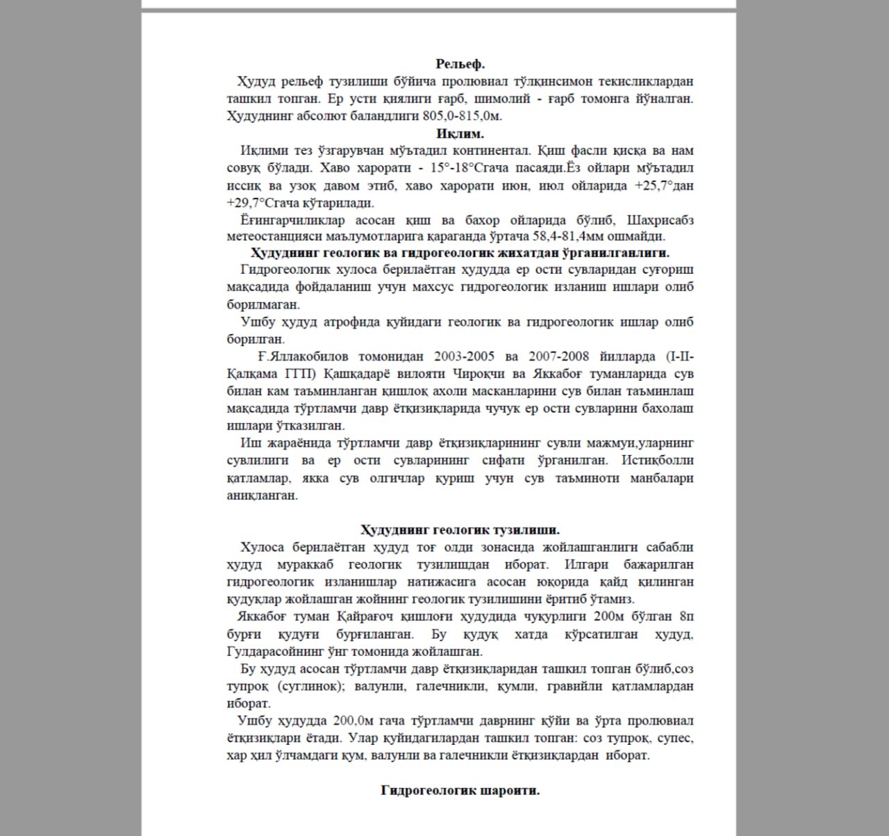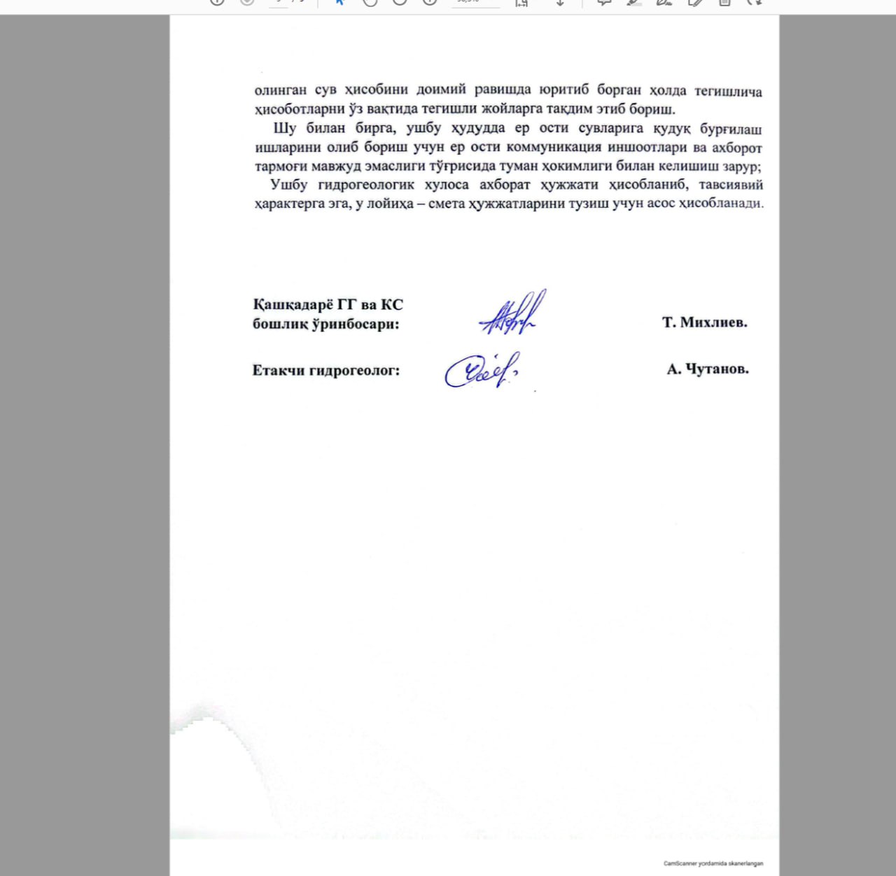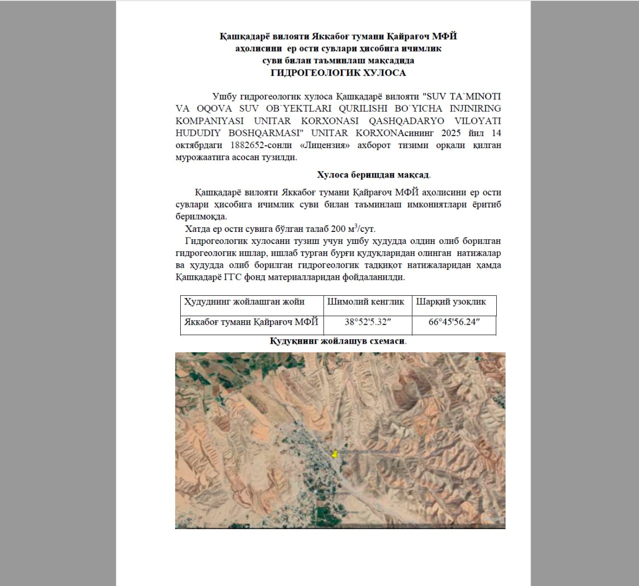 Гидрогеологик хулосани эътибор билан ўқиб чиқдик. Унда ерости суви мутлақ яроқсиз, дейилмаган. Яккабоғ ҳокимияти бу ерда хулосани ҳам, аҳолининг фикр ва эҳтиёжини ҳам инобатга олмагани маълум бўлди.
