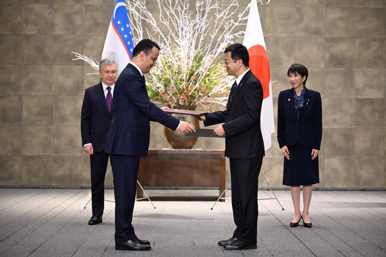 Ўзбекистон президенти ва Япония бош вазирининг Токиодаги музокаралари якунида бир қатор ҳужжатлар имзоланди. Хусусан, давлат раҳбарлари Келгуси авлодлар учун кенгайтирилган стратегик шериклик тўғрисида қўшма баёнот қабул қилди. Ҳамкорликдаги янги лойиҳаларнинг умумий қиймати 12 млрд долларга баҳоланмоқда. Самарқандда Япония модели ва стандартларига асосланган махсус иқтисодий зона барпо этилади. Цукуба университети билан бирга Тошкентда Ўзбекистон–Япония университети очилади.