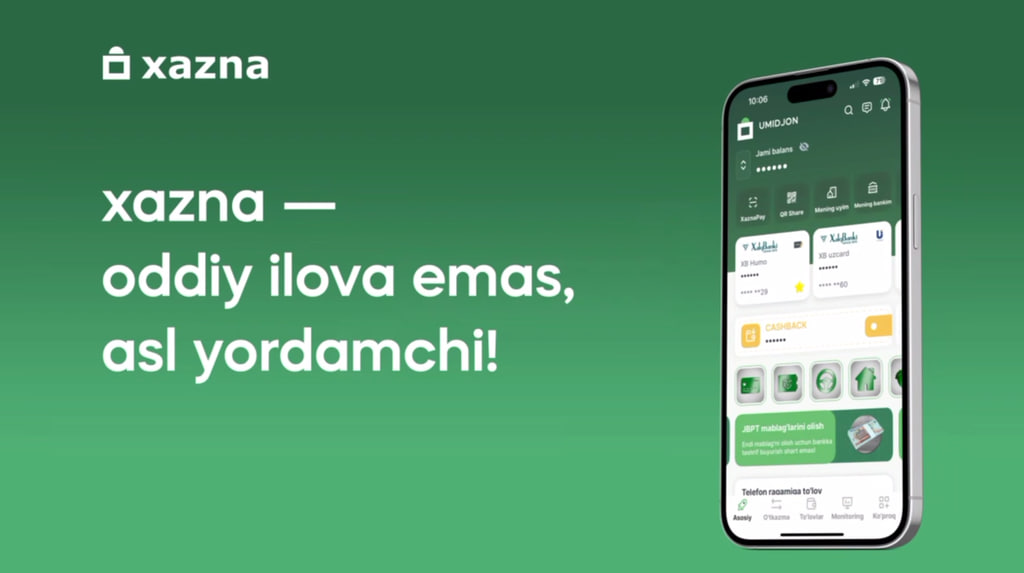 Рақамли молия ва банк хизматлари соҳасида “xazna” иловаси қулайлиги билан барчага яхши таниш. Бугунги кунда унинг фойдаланувчилари сони 10 миллиондан ошди. Мазкур натижа илованинг кенг қамровли функциялари ҳамда истеъмолчи тажрибасини яхшилашдаги янгиликлари билан изоҳланади.