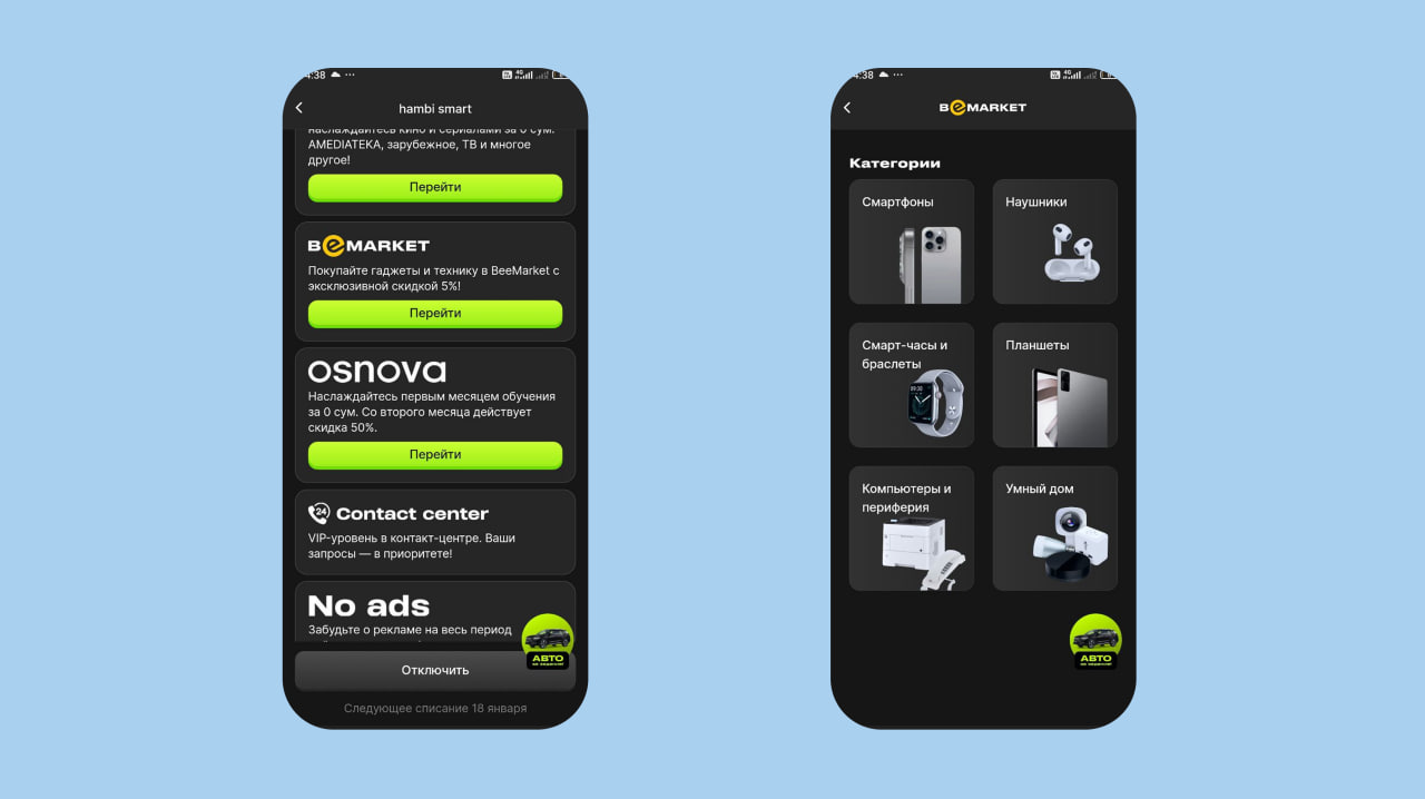 Hambi Smart минимал тўлов эвазига энг катта P2P лимитини беради, шу боис ойига 20 млн сўмдан ортиқ пул ўтказмаларида фойдали. Қўшимчасига — KINOM ва BeeMarket да чегирма.