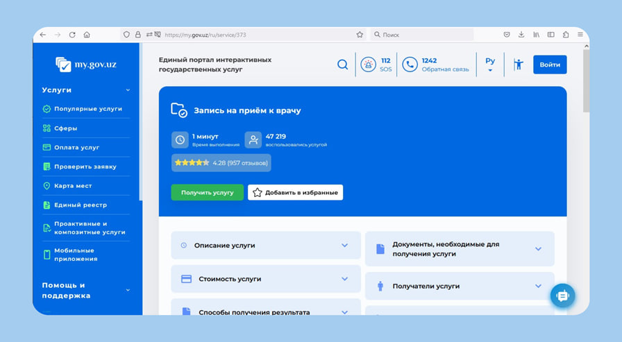Давлат хизматлари орқали шифокор қабулига ёзилиш