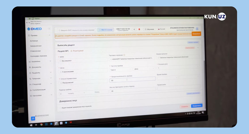 «Рецепт кўпи билан 3 ой муддатга ёзиб берилади. Бемор аҳволини назорат қилиш учун бир ойда бир марта даволовчи шифокор билан алоқага чиқиш зарур. Бу — дори воситалари учун маблағ ажратадиган суғурта жамғармаси талаби».