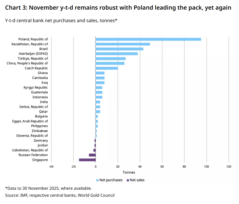 Ўзбекистон Марказий банки ноябр ойида 10 тонна олтин сотиб олиб, Полша ва Бразилиядан кейинги энг йирик харидорлардан бири бўлди.