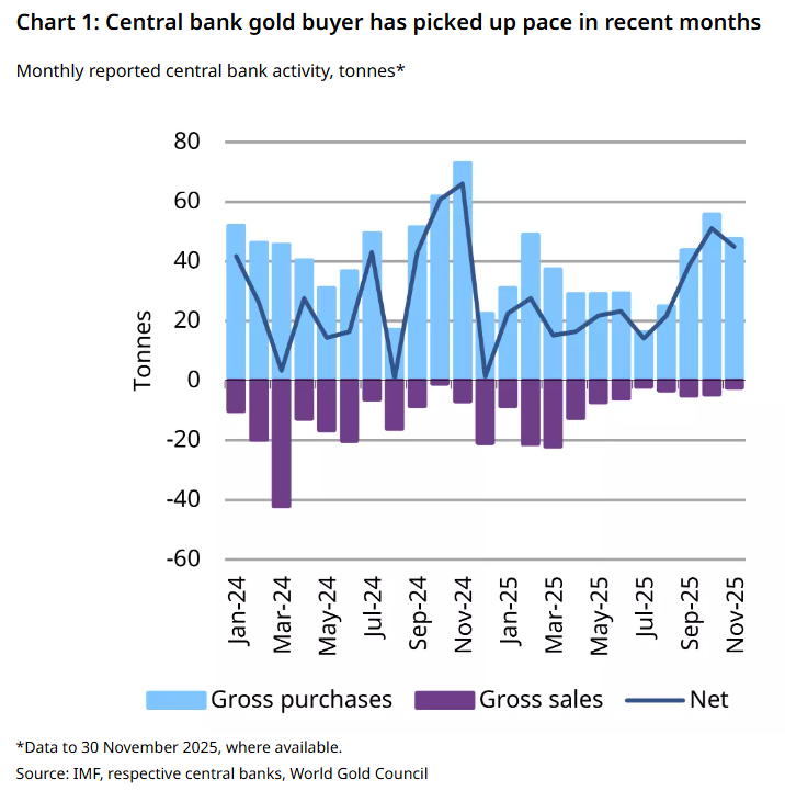 Марказий банклар ноябр ойида 45 тонна соф олтин харидини амалга оширди, дея хабар бермоқда Жаҳон олтин кенгаши.