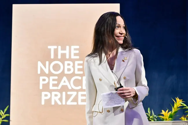 Декабр ойида у амаллаб Ослога етиб келди ва Венесуэлада «демократик ҳуқуқларни илгари суриш бўйича тинимсиз меҳнати» учун берилган Тинчлик учун Нобел мукофотини шахсан қабул қилиб олди.