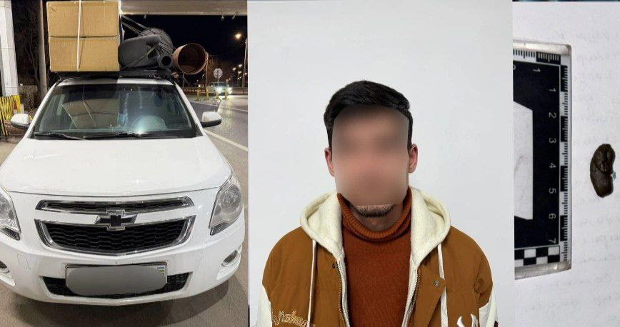 Текширув давомида автомашина йўловчиси — 2001 йилда туғилган Т.Н.нинг ўзини тутиши ва гап-сўзлари ходимларда шубҳа уйғотган. Шундан сўнг, 2 нафар холис иштирокида унинг ёни кўздан кечирилганда, қора рангли, ўткир ҳидли, сақичсимон ва наркотик моддага ўхшаш модда топилган.