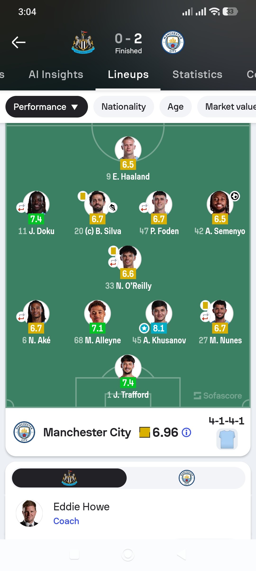 Таркибдаги жароҳатлар туфайли (Гвардиол ва Рубен Диаш) асосий таркибга қайтган Абдуқодир Ҳусанов эса Пеп Гвардиоланинг ишончини оқламоқда. У «Нюкасл»га қарши ўйинда энг юқори баҳоланган футболчи бўлди.