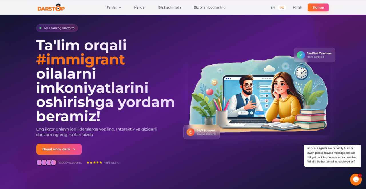 “Мен ўз фарзандимнинг таълимидан қониқмадим, — дейди Файзиев. —Шунинг учун энг яхши ўқитувчиларни топиб, тизимли ўқув тажрибасини яратишга киришдим. Тез орада бошқа ота-оналар ҳам фарзандларини қўшишни сўрашди — Darstop шундай пайдо бўлди”.