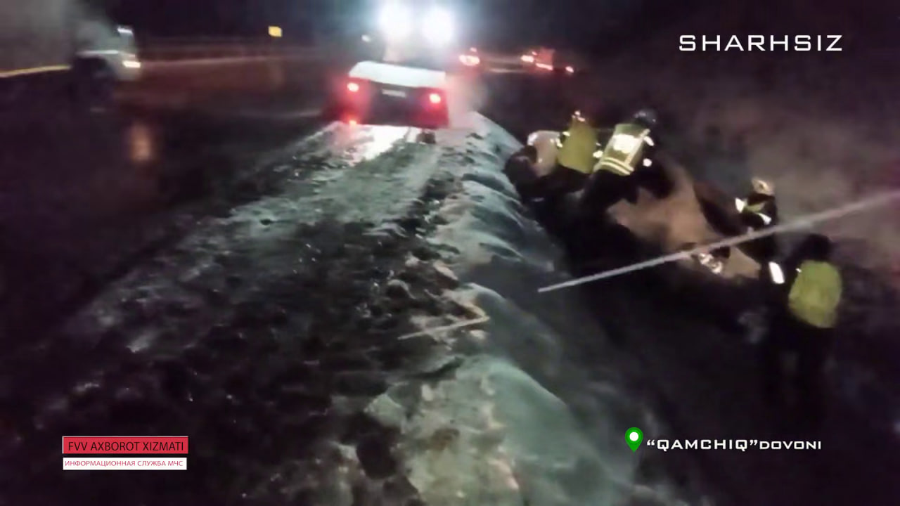 Қамчиқ довонида кузатилган ноқулай об-ҳаво сабаб йўлда қийинчиликка дуч келган ҳайдовчи ва йўловчиларга ФВВ қутқарувчилари амалий ёрдам кўрсатди. Музлама ҳосил бўлишининг олдини олиш учун қум-туз аралашмаси сепилди.