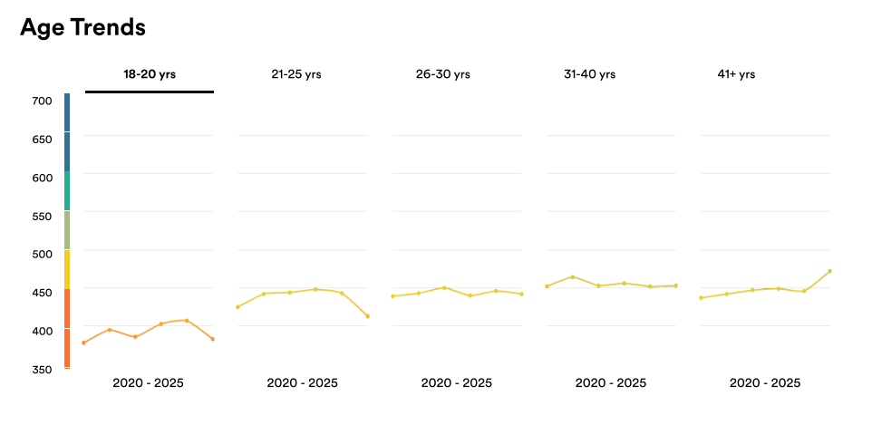 Яна бир жиҳат: энг паст кўрсаткичларни 18-20 ёшлилар гуруҳи қайд этган бўлса, 30-40 ёш ва 40 ёшдан катта бўлган тест топширувчиларнинг натижаси яхшиланган.