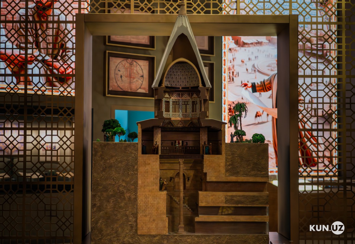 Зал марказида Биринчи ренессанс даврида яратилган Сомонийлар мақбараси, Мағоки Атторий масжиди, Чашмаи Айюб ёдгорлиги, Қусамия мадрасаси сингари ёдгорликлар макети бор.