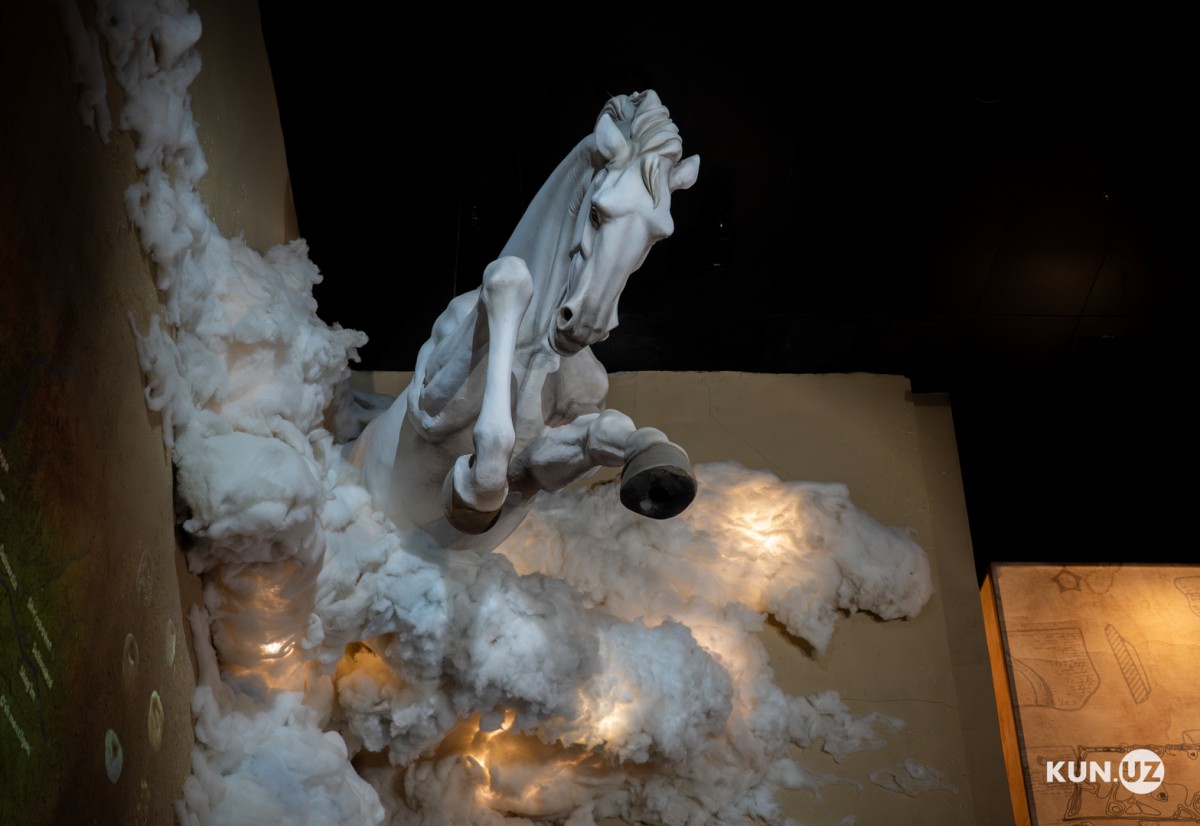 Унда энг камида 3000 йиллик давлатчилик тарихи миниатюралар ва маҳобатли рангтасвир асарлари кўринишида акс эттирилган.