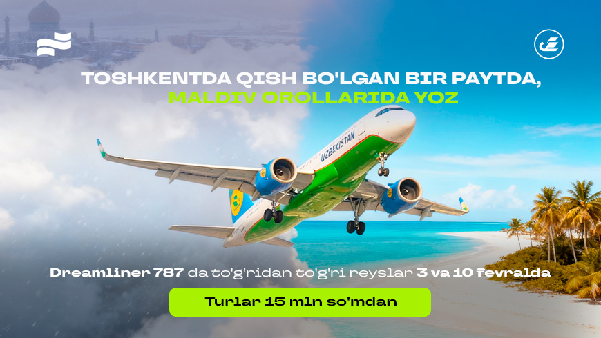 Тошкентдан Малдив оролларига: Dreamliner'да тўғридан тўғри парвоз ва феврал ойидаги ҳамёнбоп нархлар