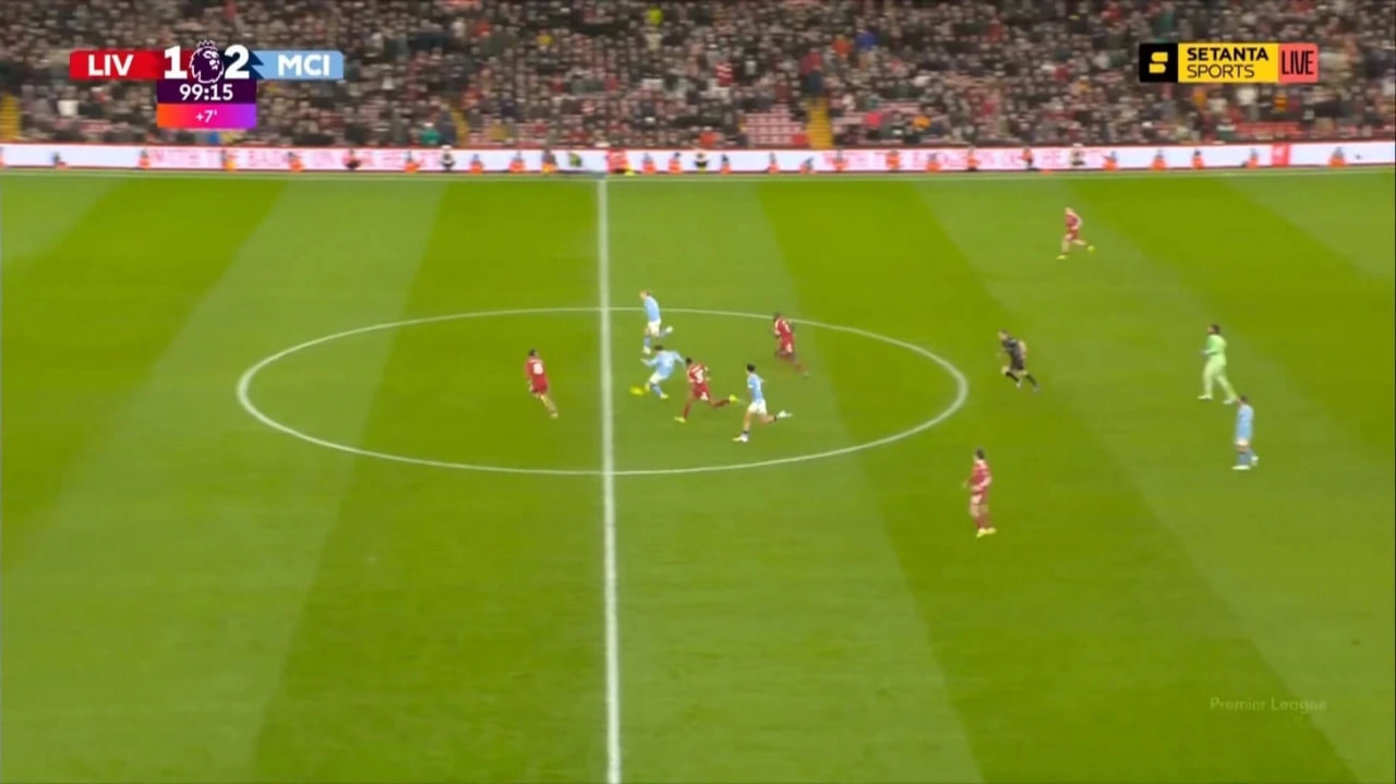 «Ливерпул»да ҳисобни сақлаб қолиш учун ўйнашга қарор қилди. Аммо Гвардиола шогирдлари ўйиннинг сўнгги қисмида вазиятни ўз томонига оғдира олишди. 84-дақиқада Ҳоланд иккинчи қаватда тўп учун курашда Конатедан устун келди ва тўпни олдинга ташлаб берди, Бернарду Силва эса тўпга Алисондан олдинроқ етиб бориб, бир тегинишда дарвозани аниқ ишғол этди. Бу вазиятда Собослаи офсайд чизиғини ушлашда хатога йўл қўйди.