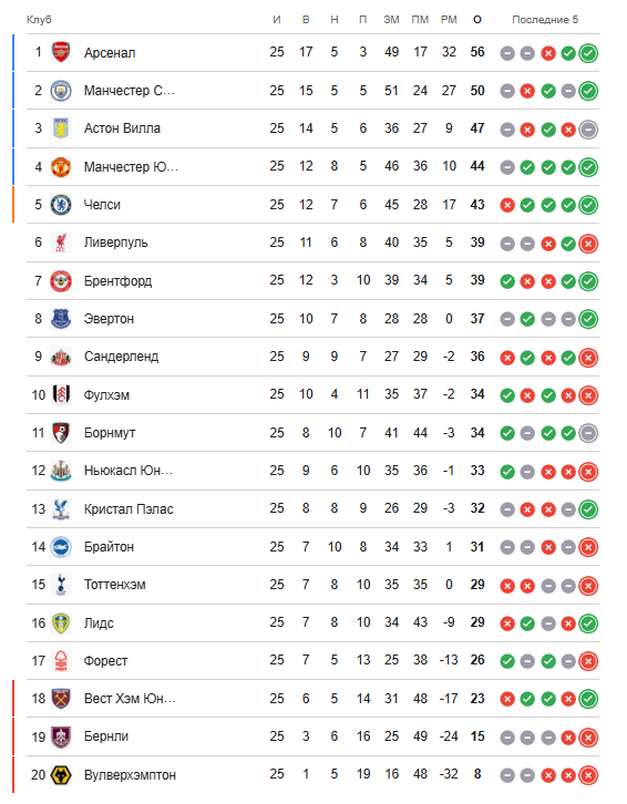 Ўз уйида ютқазган мерсисайдликлар тўртинчи ўриндаги «Челси»дан тўрт очкога ортда қолмоқда. Слот жамоаси АПЛнинг сўнгги етти ўйинида атиги бир ғалабага эришган. «Сити» эса ҳаёт-мамот ўйинидан уч очко билан қайтди ва «Арсенал» билан пойгани давом эттирадиган бўлди – орадаги фарқ яна 6 очкони ташкил этмоқда.