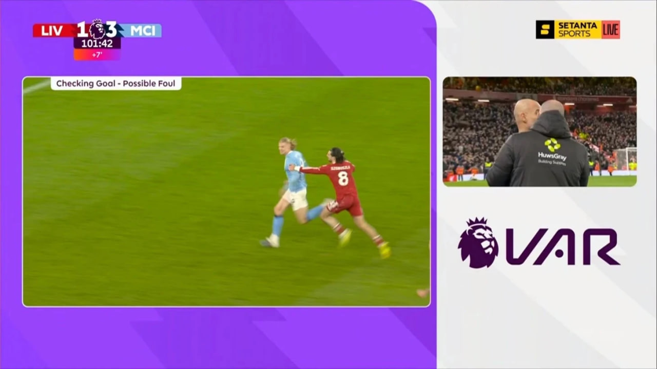 Вазиятга VAR аралашди: Ҳоланд Собослаига тўпга етиб боришга халал қилгани учун гол бекор қилинди, ўз навбатида Собослаи Ҳоландни ушлаб қолгани учун унга қизил карточка кўрсатилди.