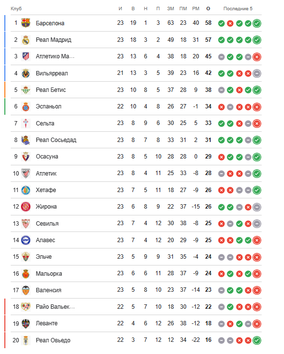 «Реал» ҳамон «Барселона»ни бир очколик фарқ билан таъқиб этмоқда. «Валенсия»ни эса хавфли ҳудуддан атиги бир очко ажратиб турибди.