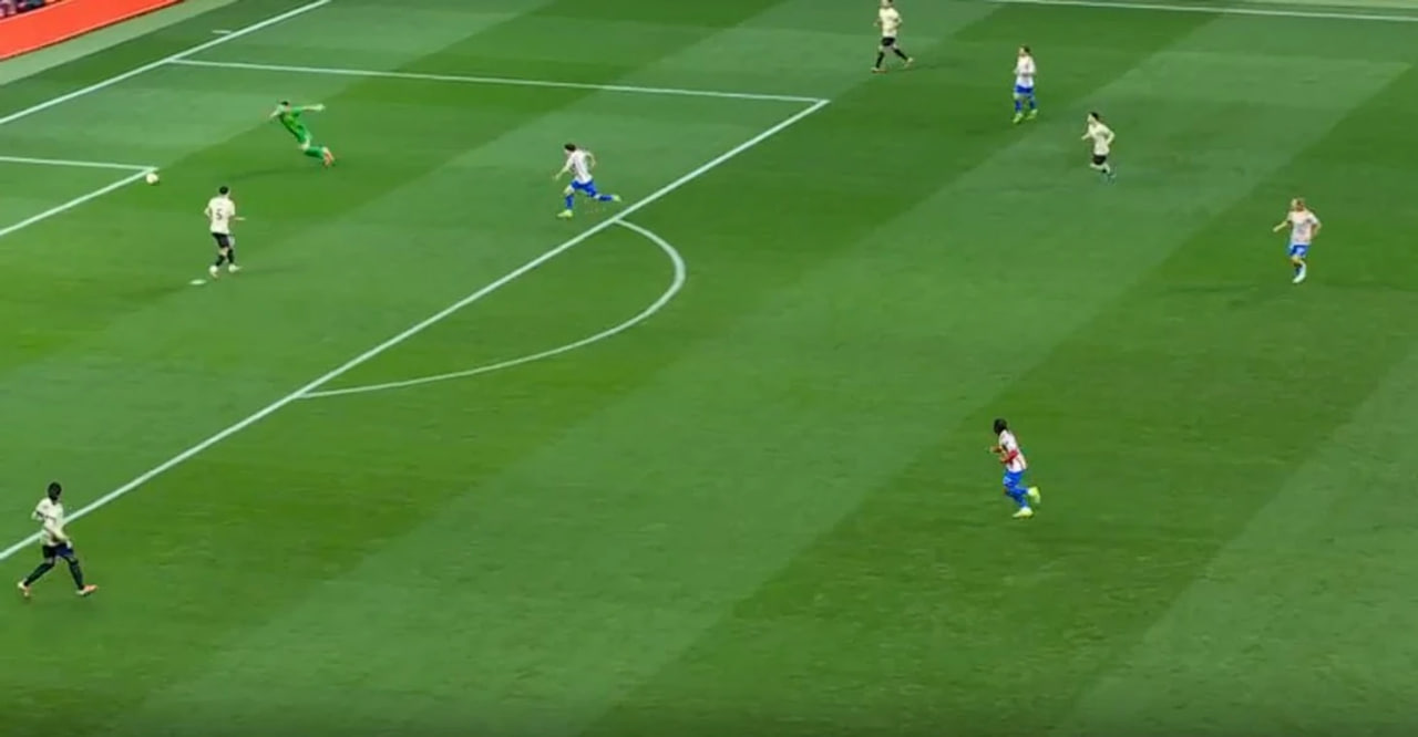 Флик жамоасининг ҳимоядаги ҳаракатларини қуйидаги кадр яққол ифодалайди – жамоа рақибга жуда кўп эркинлик тақдим этди.