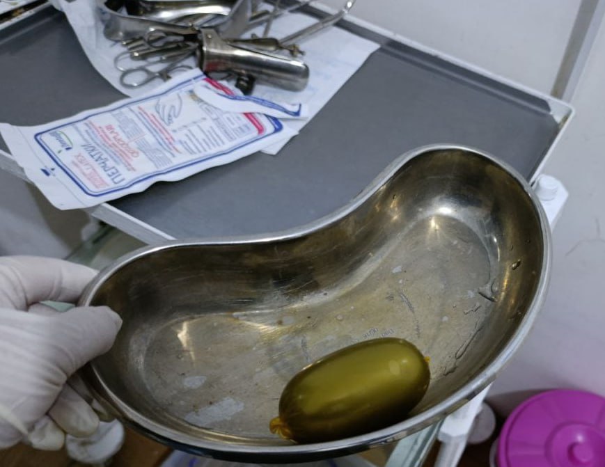 Тиббий кўрик давомида ушбу шахснинг ички аъзоларидан 4 дона ўрамлар чиқариб олинди. Мазкур ўрамларга 541 грамм опий гиёҳвандлик моддаси жойланган экан.