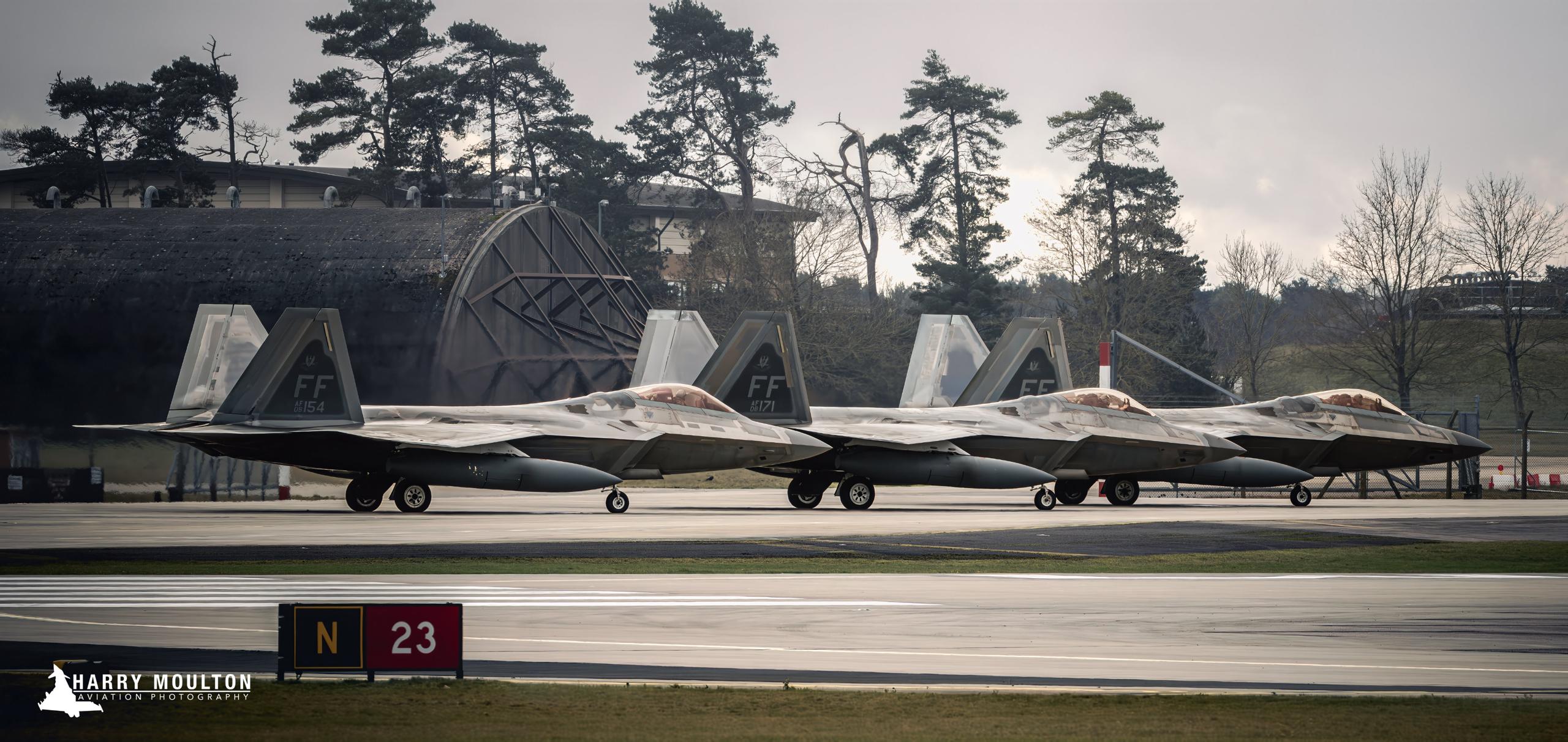 Тасдиқланган видео, суратлар ва очиқ парвоз маълумотларига кўра, ушбу самолётларнинг бир нечтаси яқинда АҚШдан Англиядаги Royal Air Force Lakenheath базасига кўчирилган. Улар сешанба куни тушдан олдин Lakenheath'дан яқин базадан чиққан бир нечта ёқилғи қуювчи самолётлар ҳамроҳлигида учиб кетган.