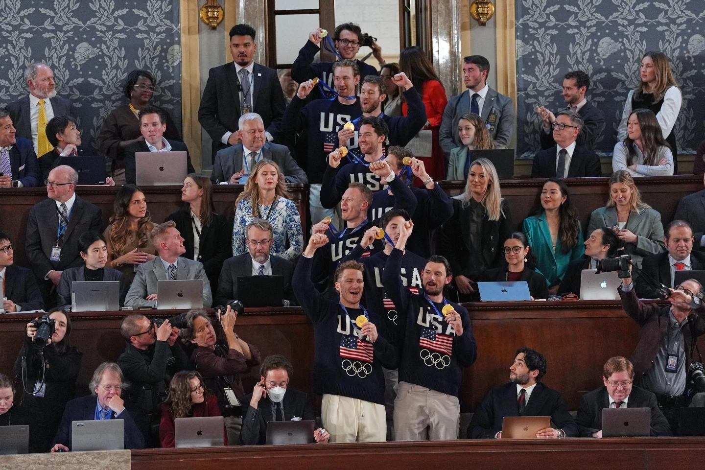 Трамп тасвирлар таъсир кучини яхши билади ва нутқини кутилмаган ҳолатлар ҳамда драматик лаҳзалар билан тўлдирди. Президент Олимпиада чемпиони бўлган АҚШ эркаклар ҳоккей жамоасини қарши олди: жамоа дарвозабонига «Озодлик» медали берилиши эълон қилинди.