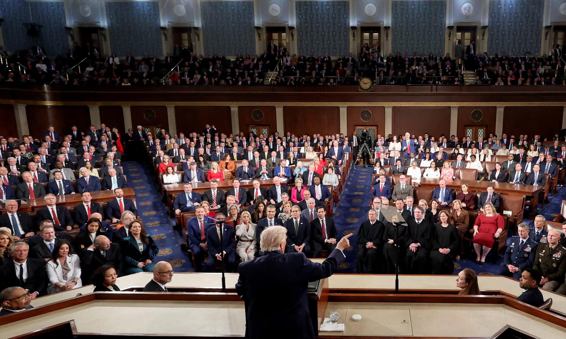 АҚШ президенти Конгресс вакиллари олдидаги анъанавий нутқида «асрларга татигулик бурилиш» амалга оширганини айтди. Доналд Трамп уни қўлламагани учун демократларни ҳақорат қилди, лекин судялар билан юмшоқроқ муомала қилди. Яшаш нархлари қимматлашаётган сайловчиларининг иқтисодий муаммоларини эса тан олмади.
