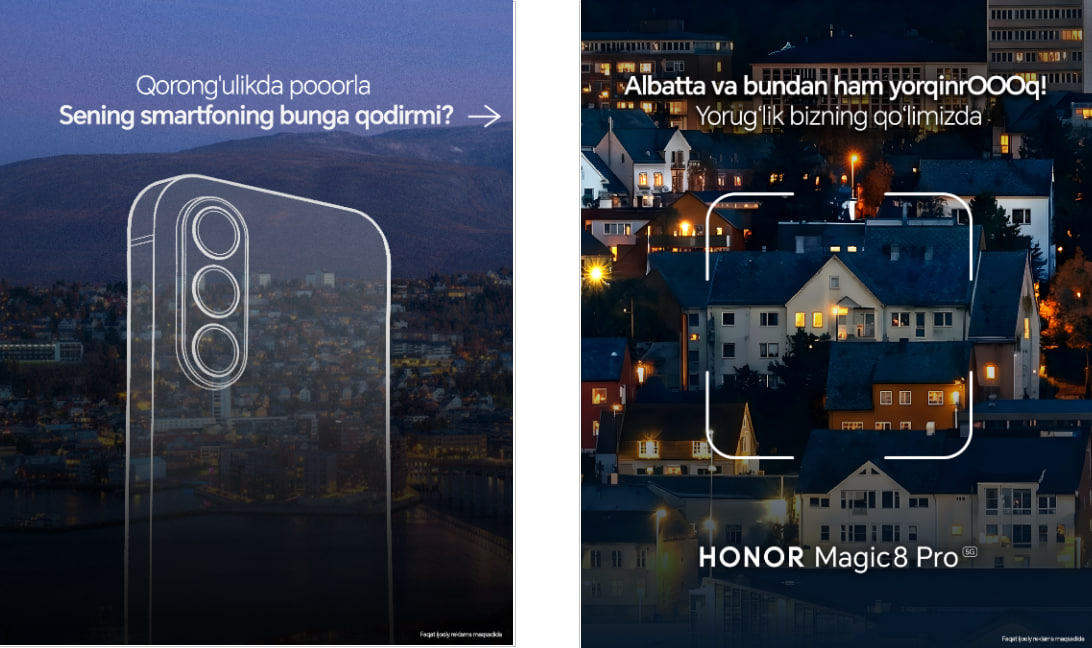 Рақиблар билан тўғридан тўғри таққослаш ўрнига HONOR Uzbekistan ижтимоий тармоқлар орқали креатив ёндашувини қўлламоқда. Қизиқарли визуал материаллар, кескин хабарлар ва тунги суратга олишга қаратилган тизерлар орқали бренд ўзининг “ҳақиқий флагман эволюцияси” деб атаган концепт атрофида қизиқиш уйғотмоқда.