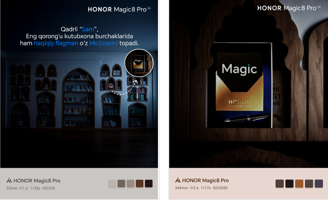 Бошқалар босқичма-босқич янгиланишларга эътибор қаратаётган бир вақтда, HONOR “Туннинг Қироли” камера тизимини тақдим этмоқда. 200MP Ultra Night Telephoto камераси билан жиҳозланган Magic 8 Pro деярли тўлиқ қоронғиликда ҳам — масалан, Тошкентдаги Ислом цивилизация маркази ёки энг қоронғи кутубхоналарда — бошқа смартфон сенсорлари фақат хира оладиган масофалардан ҳам аниқ ва тиниқ суратлар олишга мўлжалланган.