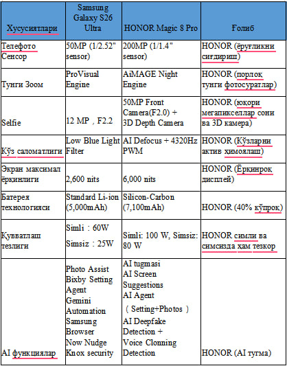 Рақобат кучаймоқда: Galaxy S26 тақдимотидан кейин ҳамма нигоҳ энди HONOR Magic 8 Pro’га қаратилмоқдами?