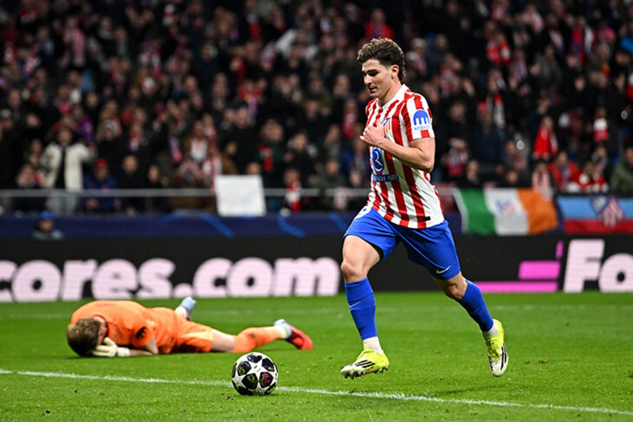Лиоренте, 6 (1:0). Гризманн, 14 (2:0). Алварес, 15 (3:0). Ле Норман, 22 (4:0). Порро, 26 (4:1). Алварес, 55 (5:1). Соланке, 76 (5:2)
