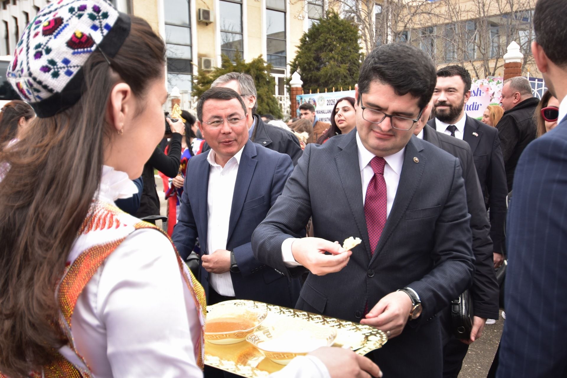 Меҳмонлар аэропортда тантанали кутиб олинган. Улар вилоят ҳокими Шуҳрат Абдураҳмонов билан биргаликда Бобур шаҳрида бўлиб ўтган Наврўз байрамида иштирок этган. Шунингдек, уларни ҳудуднинг ижтимоий-иқтисодий салоҳияти, тарихий-маданий обидалари билан таништириш кўзда тутилган.