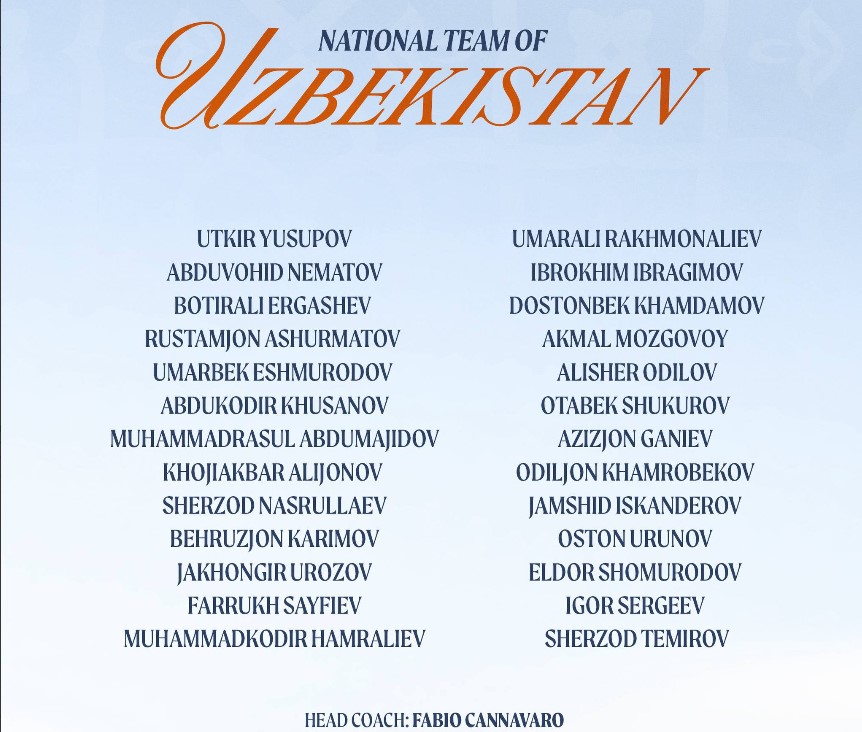 Март ойининг охирида Тошкент шаҳри FIFA Series халқаро ўртоқлик турнирига мезбонлик қилади. Миллий терма жамоа бош мураббийи Фабио Каннаваро маскур йиғин учун жалб этилган футболчилар рўйхатини эълон қилди.
