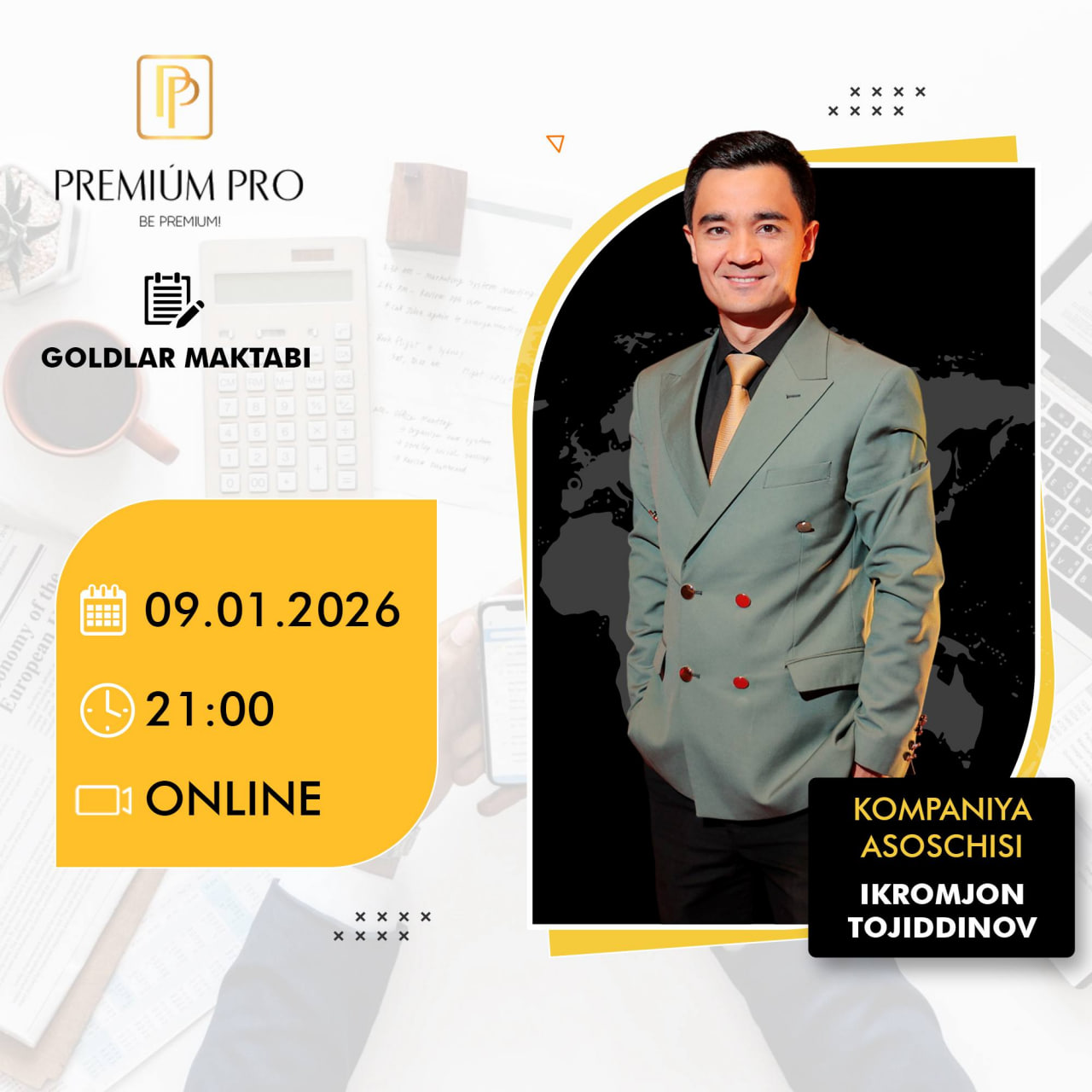 “Premium Pro world” масъулияти чекланган жамияти 2022 йил 5 сентябр куни давлат рўйхатидан ўтказилган. Унинг ягона таъсисчиси ва раҳбари Шохрух Убайдуллаев. Ижтимоий тармоқлардаги расмий каналларида қайд этилишича, компания асосчиси “уйнинг подшоҳи кимлиги” ҳамда “бир доллар тикмасдан бизнес юритиш” ҳақидаги гаплари билан танилган Икромжон Тожиддинов ҳисобланади.