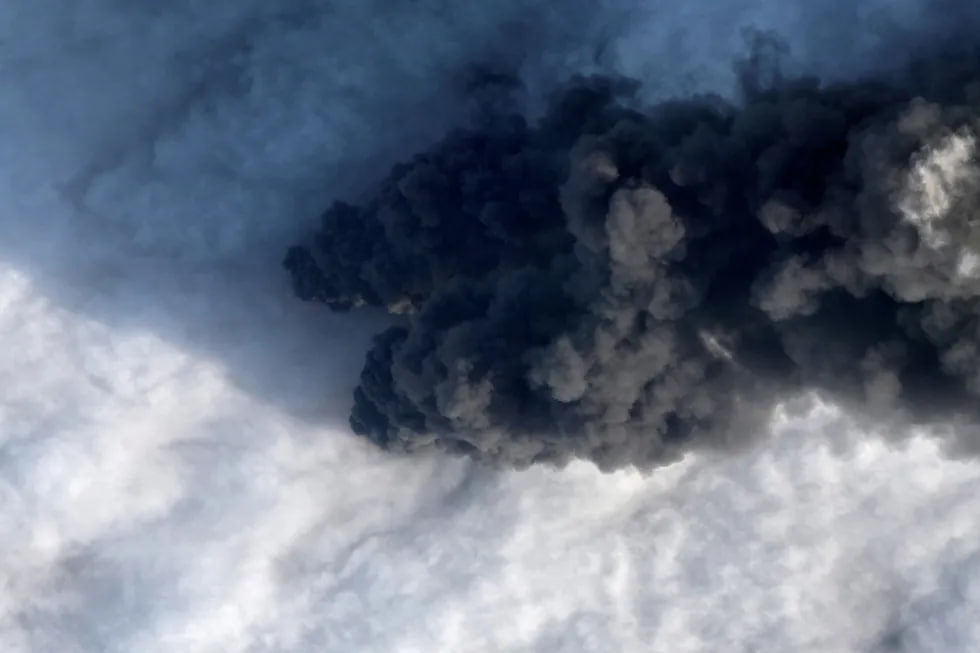 Приморскдаги ёнғиндан чиққан тутун устунининг сунъий йўлдошдан олинган сурати, 2026 йил 24 март