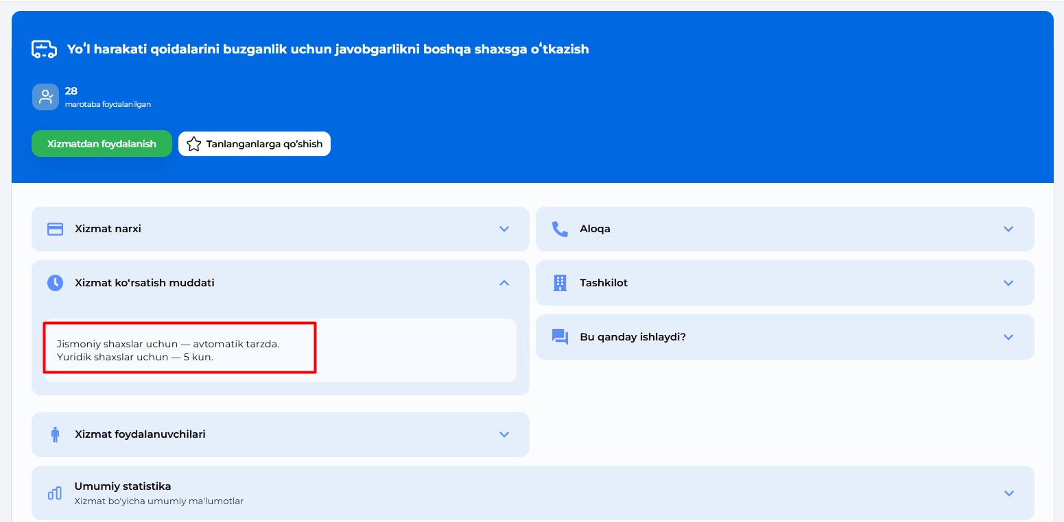 Қоидабузарлик учун жавобгарликни бошқа шахсга ўтказиш хизмати my.gov.uz порталида ишга туширилди. Мақолада буни амалга ошириш тартиби, қайси қоидабузарликка неччи балл берилиши ва жарима баллари қандай ҳисобланиши билан танишасиз.