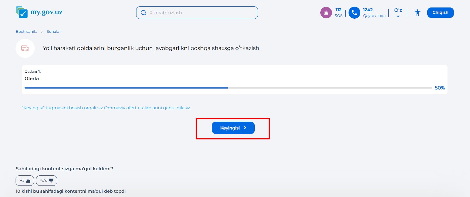 1-қадамда “кейингиси” тугмасини босиш орқали оммавий оферта талабларини қабул қилган бўласиз.