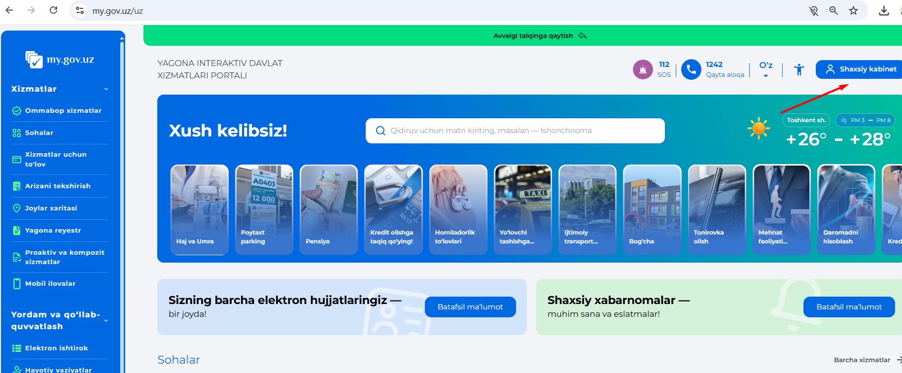 my.gov.uz порталида ўз шахсий кабинетингизга кирасиз.