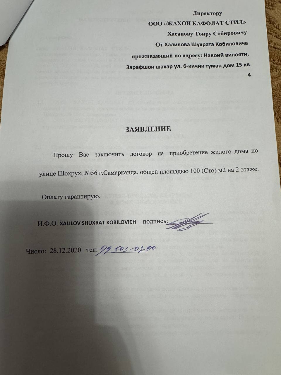 Умуман, бу ердан уй олиш истагида бўлганларнинг барчасининг ўз ҳикояси бор. Кимдир хорижда ишлаб топган пулини “JAHON KAFOLAT STIL” хусусий корхонаси раҳбарига нақд шаклда тўлаган. Яна кимдир шаҳар чеккасидаги уйини сотган, кимдир машиналарини сотган ва янги уй учун тўлов қилган. Деярли барча мижозлар бугун моддий-ижтимоий томондан жиддий муаммо билан тўқнаш келган.