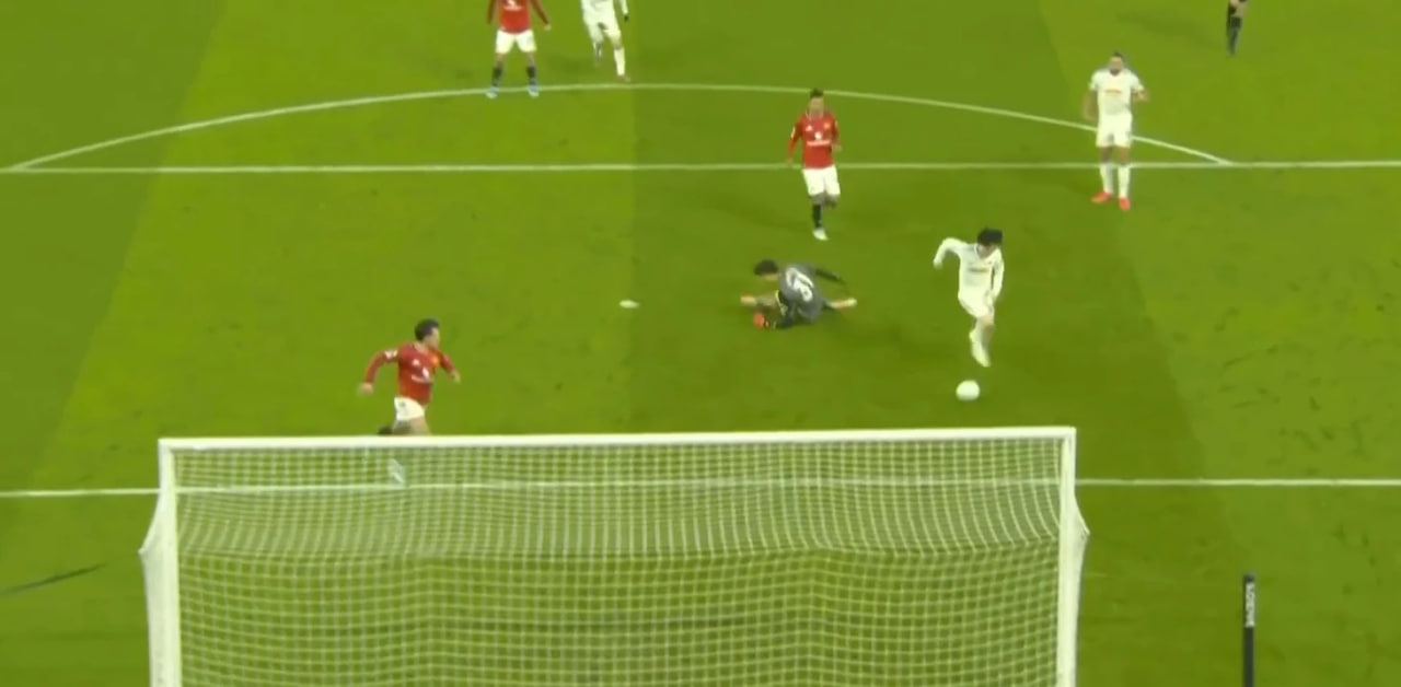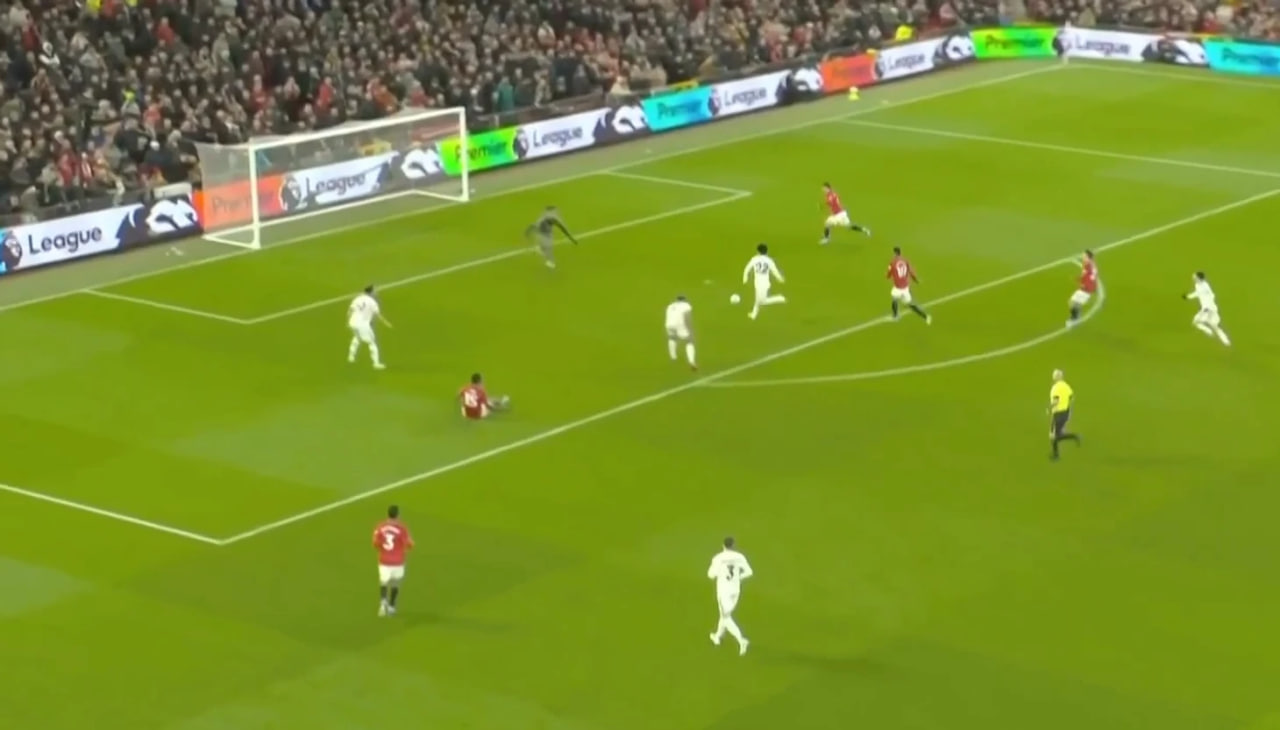Лени тўпни «Лидс» яримҳимоячиси Ао Танакага олдирди, япониялик футболчи жарима майдонига ёриб кирди ва дарвозабонни ҳам алдаб ўтиб, тўпни бўш дарвоза томон юмалатиб юборди. Аммо охирги паллада Лисандро Мартинес тўпга етиб келишга улгурди.
