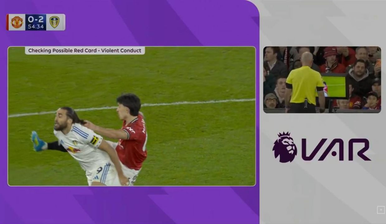 Танаффусдан кейин «Манчестер Юнайтед» фаолроқ ўйнай бошлади. Аммо бўлим бошидаги шиддат жавоб гол эмас, қизил карточка билан якунланди. 55-дақиқада Мартинес майдон марказида Калверт-Люиннинг сочидан ушлаб қолди: VAR ва бош ҳакам Пол Тирни буни қизил карточкага тортадиган қўполлик деб топди. Видеотакрорда «МЮ» ҳимоячиси қасддан ҳаракат қилмагани ва рақиб бошига қўли тасодифан тегиб кетганини, кейин тезда қўлини олганини кўриш мумкин, аммо ҳакамлар учун контактнинг ўзи етарли бўлди.